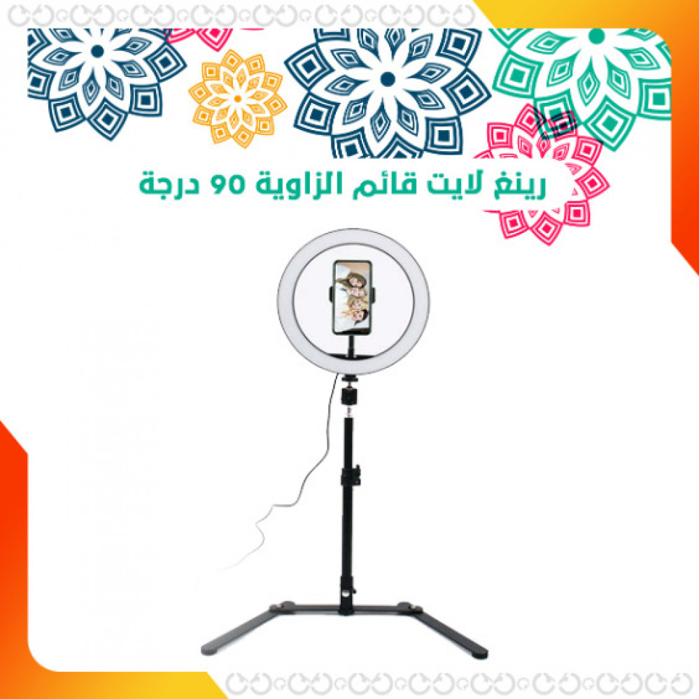 لعشاق الرسم والعروض التعليمية المصورة ومن يحتاجون حامل جوال قائم الزاوية، نقدم لكم هذا الرينغ لايت المميز الذي يعدّ من أهم و أفضل إكسسوارات التصوير، الذي سيمكنك تصوير منتجاتك بشكل مائل درجة 90 درجة دون الخوف على جهازك من السقوط، فهذا الرينغ لايت مصمم بطريقة مخصصة للزوايا الصعبة. انقر هنا للاستعراض والتسوّق