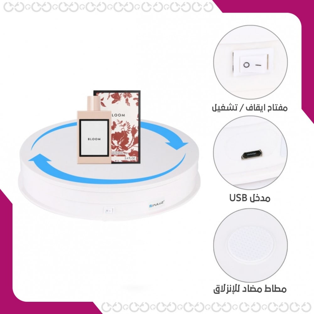إحدى إكسسوارات التصوير الاحترافيّة لكل أصحاب المتاجر والمصوّرين، الآن اصبح بإمكانك الحصول على صور وفيديوهات احترافية بزاوية 360 درجة وعرض فيديو رائع للمنتجات! كن خارج الصندوق وابتكر المزيد من الإبداع باستخدامك لقاعدة التصوير الدوارة التي من خلالها ستلتقط صوراً أكثر جاذبية لمنتجاتك بزاوية 360 درجة.